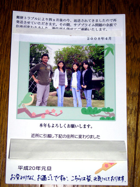 家族の元気な様子が約4ケ月遅れの年賀状には記して