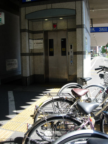 鹿鉄駅の地上エレベーター直近まで雑然と自転車が