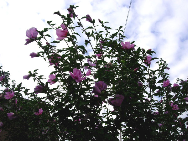 やはり、ムクゲは青空を背景だと映えますが、曇り勝ちでは