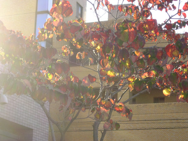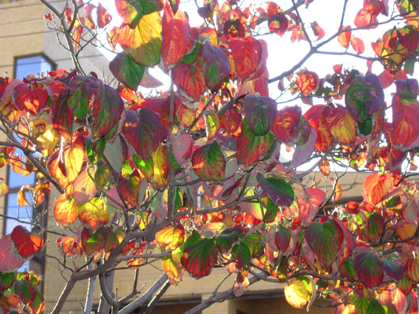 こちらのハナミズキの葉は黄色もあってきれいですね。私のほうでは紫がかった赤茶色です。