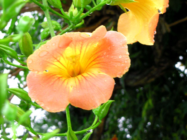 所用で出かけた日、雨が降り、当然凌霄花(のうぜんかずら)も